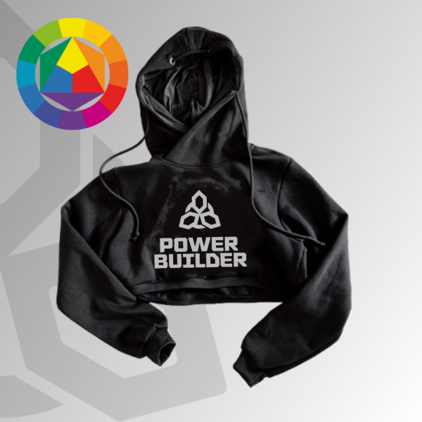 Egyedileg varrott kapucnis crop pulcsi, elöl nagy mintával, amit tetszőleges színben kérhetsz, a kapucniban pedig pici PWB logós mintával.