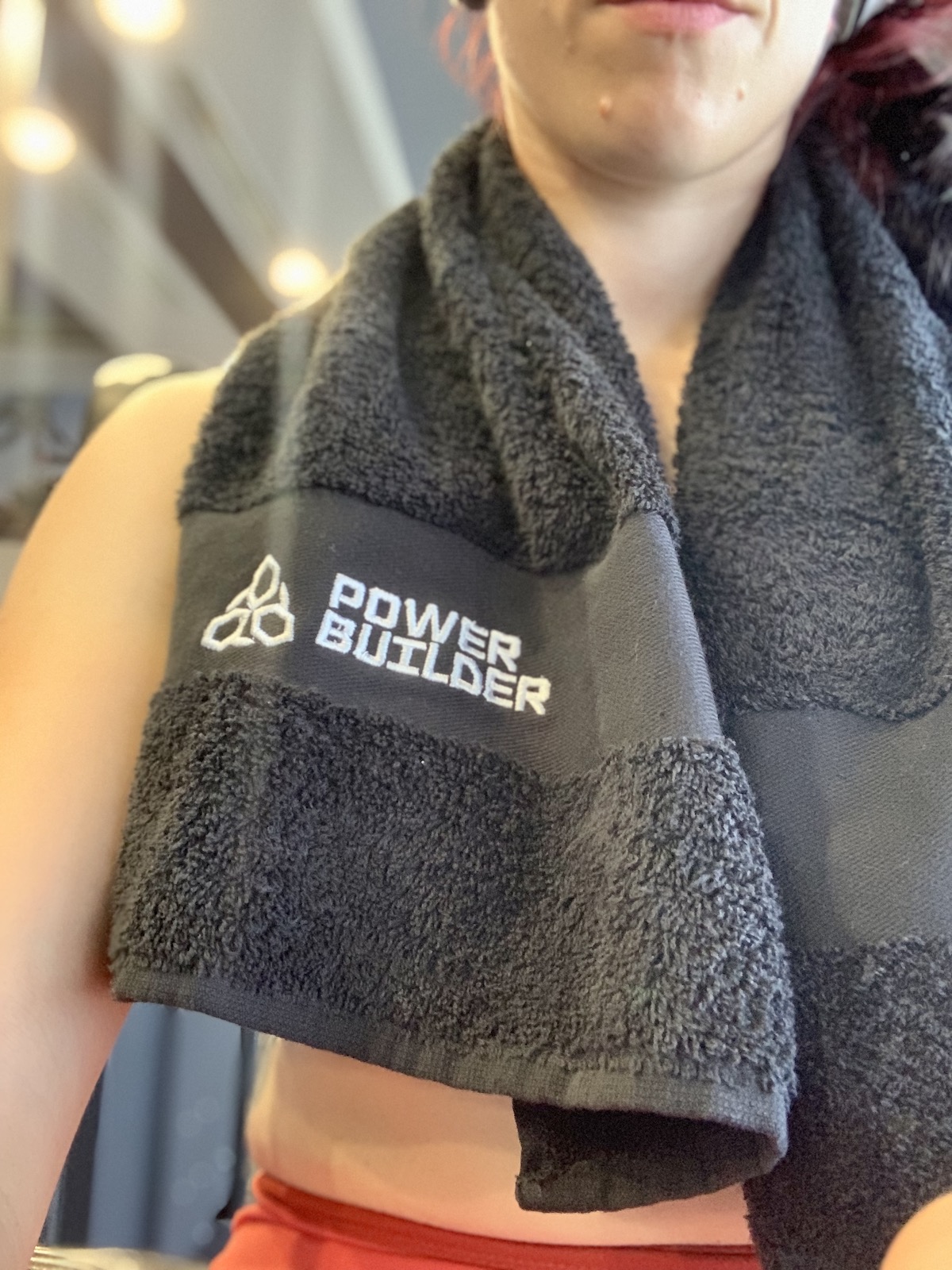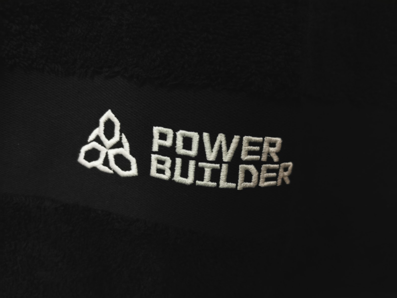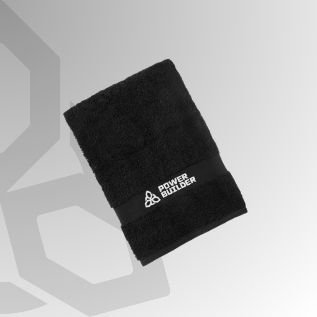 50×100 cm-es fekete törölköző hímzett PWB logóval és felirattal.
